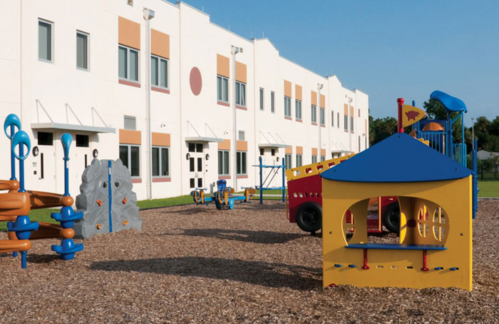 Atwater Elementary School opened for the 2009-10 school year and was entirely constructed by Jon F. Swift Construction. The campus features a two-story classroom building with cafetorium, administrative offices, kitchen, media center, computer labs, music lab and art lab. The building was designed as a shelter and built to strict qualifications as an “Enhanced Hurricane Protection Area.” The project included construction of a covered play area, softball field, basketball courts, playgrounds and parking lots. Off-site work included water mains, a lift station and more than one-mile of sanitary sewer force main.