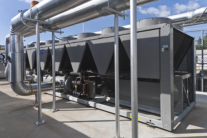 This project was a phased replacement project for the school’s airside and chilled waterside of the HVAC system in twelve buildings on campus. The Jon F. Swift team installed two new air-cooled chillers, new ice storage tanks, and replacing piping and pumps in the pump room. While replacing HVAC duct work in the classrooms, $700,000 in additional work was added to the project including: