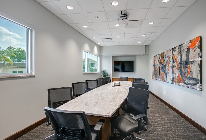 Sabal Palm Bank, a local Sarasota-based bank expanded to their third location in a new building in downtown Sarasota. Jon F. Swift Construction completed the build out of their new location on the first and second floors. Complete with high-end finishes, this new location has now become Sabal Palm Bank’s headquarters.